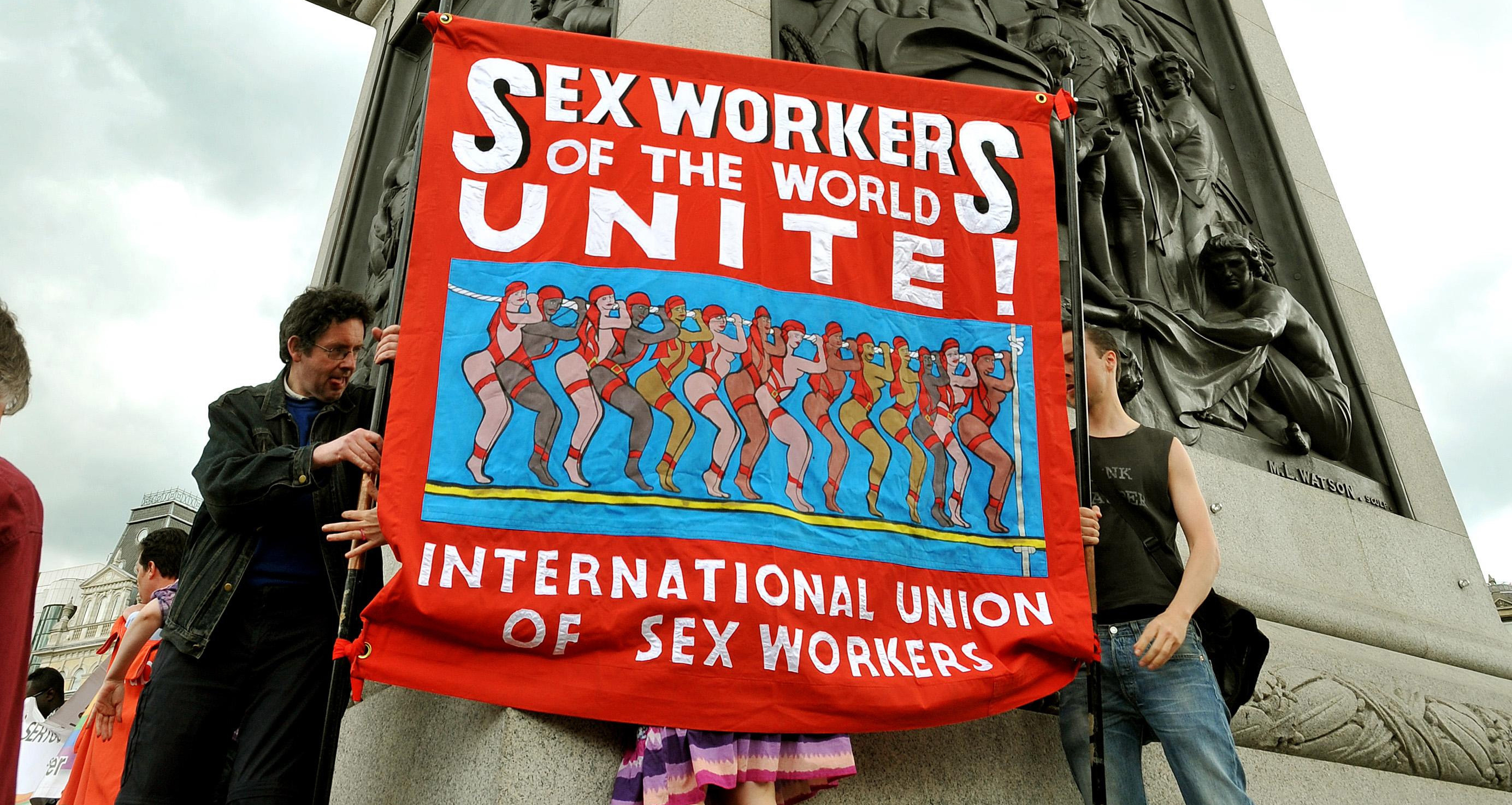 International Union of Sex Workers banner at a May Day rally at Trafalgar Square on May 1, 2010. Photo from the Morning Star (UK).